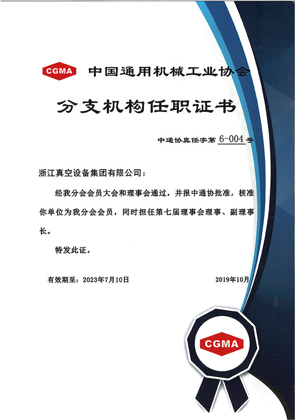 中國(guó)通用機(jī)械工業(yè)協(xié)會(huì)分支機(jī)構(gòu)任職證書